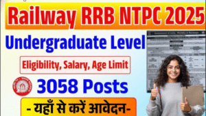 खुशखबरी अगर आप 10+2 पास है और रेलवे में सरकारी नौकरी का सपना देख रहे हैं तो आपके लिए एक शानदार मौका है रेलवे भर्ती बोर्ड आरआरबी ने एनटीपीसी अंडरग्रैजुएट लेवल के CEN 07/2025 के तहत कुल 3058 से अधिक पदों पर बंपर भर्ती का नोटिफिकेशन जारी कर दिया है