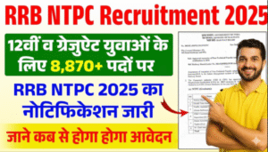 भारतीय रेलवे में सरकारी नौकरी की तलाश कर रहे 12वीं पास और ग्रेजुएट युवाओं के लिए खुशखबरी रेलवे भर्ती बोर्ड आरआरबी ने आरआरबी एनटीपीसी भारती 2025 के लिए एक अधिसूचना जारी की है इस भर्ती के तहत कुल 8875 पदों पर आवेदन मांगे गए हैं अगर आप भी इस भर्ती के लिए आवेदन करना चाहते हैं तो यहां आपको इससे जुड़ी पूरी जानकारी मिलेगी